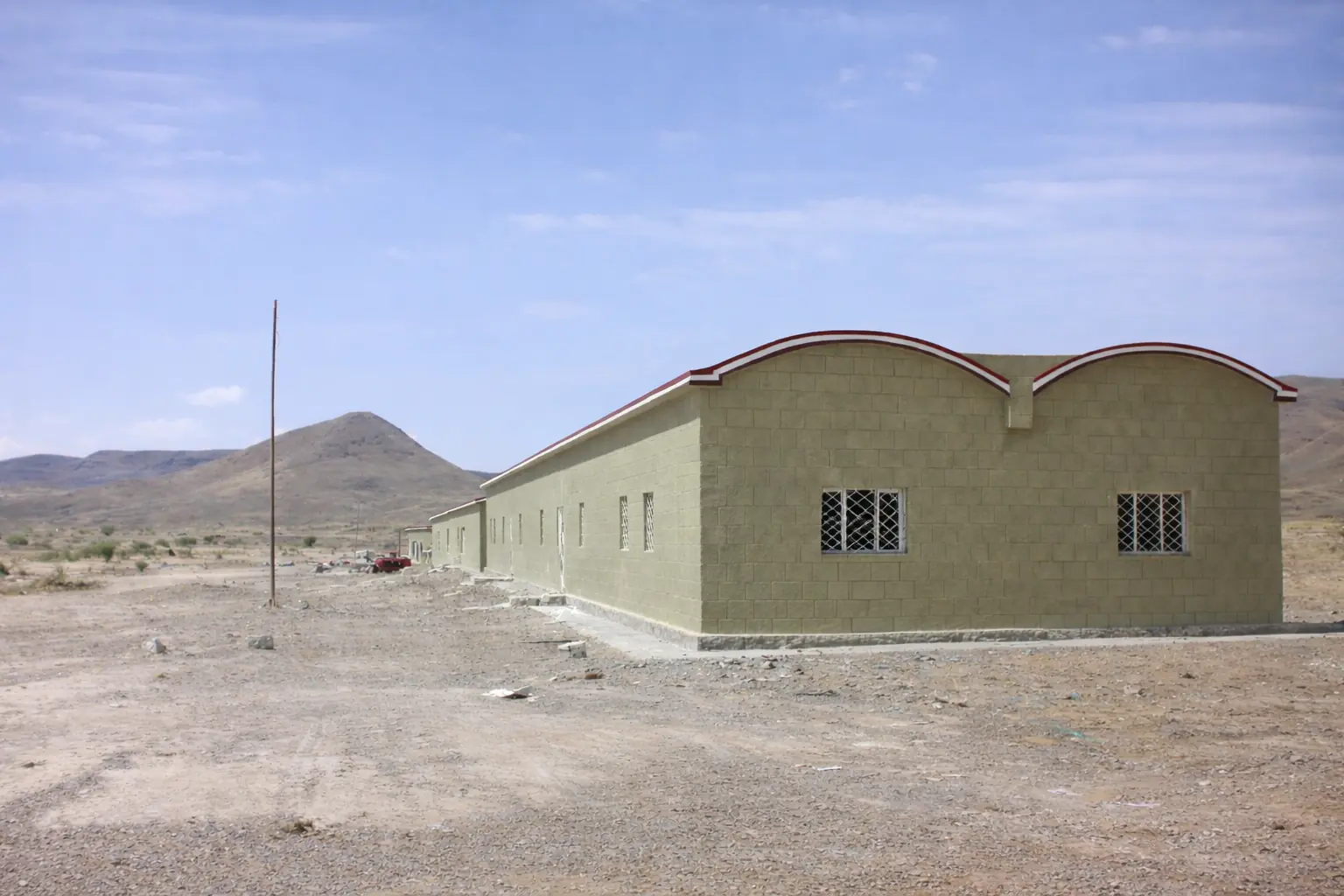 "بعد زيارة ميدانية أُجريت بعد 30 عامًا من الخدمة، وُجد أن الهيكل في حالة ممتازة، مع تقدير لسلامته الهيكلية بحوالي 95%. يستخدم المبنى نظام بناء مقوس مع Thermostone، والذي ثبت أنه اقتصادي وعملي وفعال هيكليًا. يوفر النظام عزلًا حراريًا ممتازًا، ويسهل الشكل المقوس العزل المائي الفعال والصرف. بشكل عام، يُظهر الهيكل متانة عالية وأداء طويل الأمد، مما يؤكد موثوقية هذا النظام الإنشائي."
